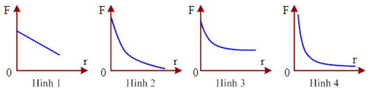 Đồ thị nào trong các đồ thị dưới đây có thể biểu diễn sự phụ thuộc của lực tương tác giữa hai điện tích điểm vào khoảng cách giữa chúng?