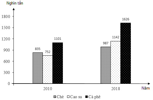 Cho biểu đồ:SẢN LƯỢNG MỘT SỐ CÂY CÔNG NGHIỆP LÂU NĂM CỦA NƯỚC TA NĂM 2010 VÀ NĂM 2018(Số