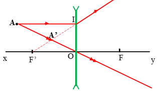 Trong hình vẽ bên, xy là trục chính của thấu kính, A là điểm vật thật, A’ là ảnh của A