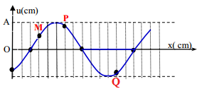 Một sợi dây đàn hồi đủ dài đang có sóng ngang hình sin truyền qua theo chiều dương của trục Ox, với tần số sóng \(f = 1H{\rm{z}}\). Ở thời điểm t, một đoạn của sợi dây và vị trí của ba điểm M, P, Q trên đoạn dây này như hình vẽ. Giả sử ở thời điểm \(t + \Delta t\) ba điểm M, P, Q thẳng hàng. Giá trị nhỏ nhất của \(\Delta t\) gần nhất với kết quả nào sau đây?
