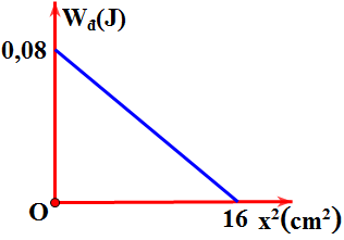 Một con lắc lò xo có vật nhỏ khối lượng 0,1 kg dao động điều hòa trên trục Ox với phương trình x = Acosωt. Hình bên là đồ thị biểu diễn động năng của vật theo bình phương li độ. Lấy π2 = 10. Quãng đường nhỏ nhất vật đi được trong thời gian \(\frac{1}{{15}}\,\,s\) là