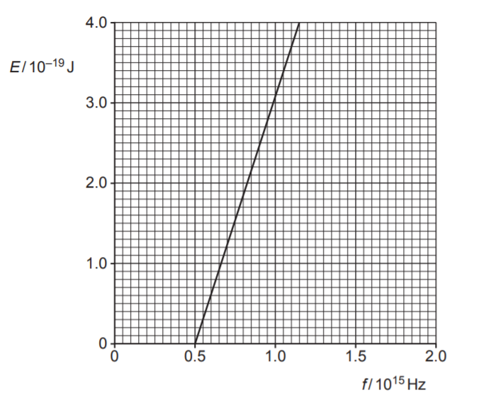 Đồ thị dưới đây biểu diễn động năng cực đại E của êlectron thoát ra khỏi bề mặt của