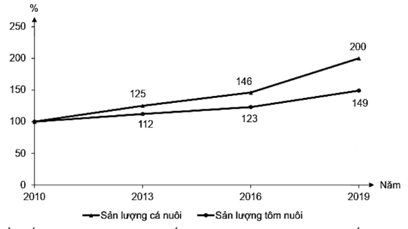 Cho biểu đồ về sản lượng cá nuôi và tôm nuôi của nước ta giai đoạn 2010 - 2019: (Nguồn số