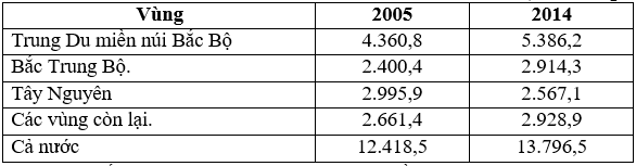 Cho bảng số liệu:DIỆN TÍCH RỪNG NƯỚC TA NĂM 2005 VÀ NĂM 2014(Đơn vị: nghìn ha)Theo bảng số
