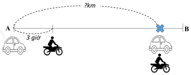 Một xe máy đi từ A với vận tốc \(44km/h\). Sau 3 giờ một ô tô đi từ A đuổi theo xe máy với vận tốc \(56km/h\). Hỏi: