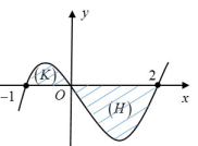 Biết diện tích các hình phẳng \(\left( K \right)\), \(\left( H \right)\) lần lượt là \(\dfrac{5}{{12}}\) và \(\dfrac{8}{3}\). Tính \(\int\limits_{ - 1}^2 {f\left( x \right)dx} \).
