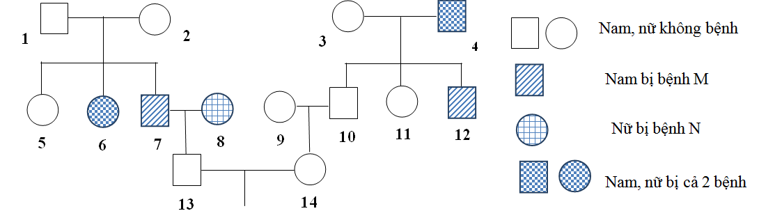 Phả hệ dưới đây mô tả bệnh M và bệnh N di truyền phân li độc lập, mỗi bệnh do một trong