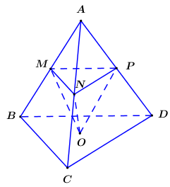 Cho tứ diện \(ABCD\). Gọi \(M,\,\,N,\,\,P\) lần lượt là trung điểm các cạnh \(AB,\,\,AC,\,\,AD\) và