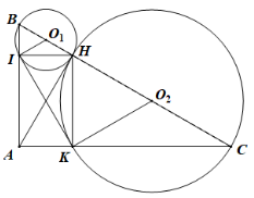 Cho tam giác \(ABC\) vuông ở \(A\,\,\left( {AB < AC} \right)\) có đường cao \(AH\) \(\left( {H \in BC} \right).\) Trên nửa mặt phẳng bờ \(BC\) chứa điểm \(A,\) vẽ nửa đường tròn \(\left( {{O_1}} \right),\) đường kính \(BH\)cắt \(AB\) tại \(I\,\,\left( {I \ne B} \right)\)và nửa đường tròn \(\left( {{O_2}} \right)\) đường kính \(HC\) cắt \(AC\) tại \(K\,\,\left( {K \ne C} \right)\). Chứng minh rằng: