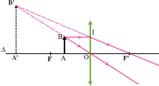 a) Sử dụng 2 trong ba tia sáng đặc biệt để dựng ảnh qua kính lúp.
