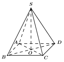 Cho hình chóp đều \(S.ABCD\) có đáy là hình vuông cạnh \(a\) , cạnh bên \(SA = 2a\). Thể tích của khối chóp.