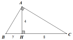 Cho hình vẽ bên, biết \(AH = 4,CH = 8,BH = y\). Giá trị của y