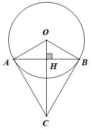 Cho đường tròn \(\left( {O;R} \right)\) dây cung AB với \(\angle AOB = 120^\circ \). Hai tiếp tuyến tại A và B của đường tròn cắt nhau tại \(C.\) Diện tích tam giác ABC bằng