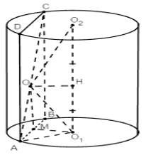 Cho hình trụ có trục \({O_1}{O_2}\). Một mặt phẳng \(\left( \alpha \right)\) song song với trục \({O_1}{O_2}\), cắt hình trụ theo thiết diện là hình chữ nhật ABCD. Gọi O là tâm của thiết diện đó, bán kính đường tròn ngoại tiếp hình chữ nhật ABCD bằng bán kính đường tròn đáy hình trụ. Tính góc \({O_1}O{O_2}\).