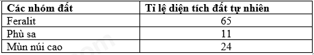 Bảng số liệu cơ cấu các nhóm đất chính ở Việt Nam (đơn vị tính %)