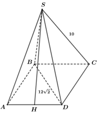 Tính diện tích toàn phần của hình chóp tứ giác đều \(S.ABCD\) biết \(BD = 12\sqrt 2 cm;\,\,SC = 10cm\).