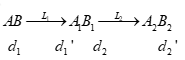 Sơ đồ tạo ảnh : \(AB \to {A_1}{B_1} \to {A_2}{B_2}\)