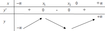 Cho hàm số \(y = f\left( x \right) = a{x^3} + b{x^2} + cx + 1\,\,\left( {a \ne 0} \right)\) có bảng biến thiên