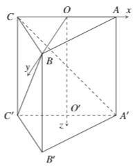 Cho hình lăng trụ tam giác đều \(ABC.A'B'C'\) có cạnh bên bằng cạnh đáy. Đường thẳng \(MN\) (\(M \in A'C,\;N \in BC'\)) là đường vuông góc chung của \(A'C\) và \(BC'\). Tỉ số \(\dfrac{{NB}}{{NC'}}\) bằng: