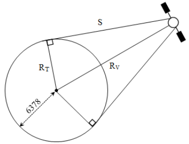 Quãng đường sóng điện từ truyền thẳng từ vệ tinh đến điểm xa nhất trên Trái Đất được xác định bởi công thức: \(S = \sqrt {R_V^2 - R_T^2} \)