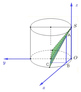 Có một cốc thủy tính hình trụ, bán kính trong lòng cốc là \(4\,\,cm\), chiều cao trong lòng cốc là \(10\,\,cm\) đang đựng một lượng nước. Tính thể tích lượng nước trong cốc, biết khi nghiệm cốc nước vừa lúc chạm miệng cốc thì ở đáy mực nước trùng với đường kính đáy.