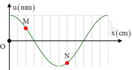 Một sóng ngang hình sin truyền trên một sợi dây dài. Hình vẽ bên là hình dạng của một đoạn dây tại một thời điểm xác định. Trong quá trình lan truyền sóng, hai phần tử M và N lệch pha nhau một góc là