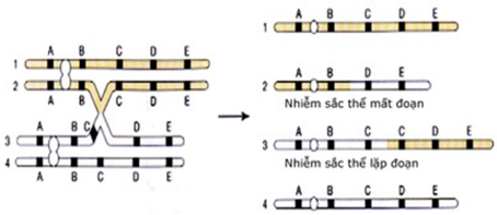 Vào kì đầu của giảm phân I, sự trao đổi đoạn không cân giữa 2 cromatit thuộc cùng một cặp NST tương đồng sẽ gây ra các hiện tượng nào sau đây?