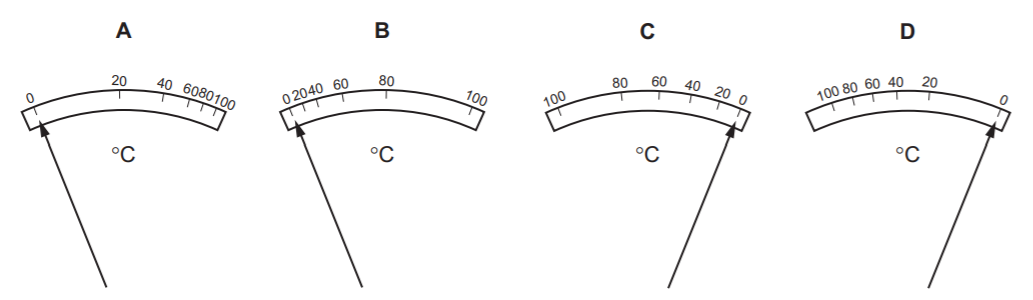 Sơ đồ nào dưới đây biểu diễn thang nhiệt độ trên ampe kế?