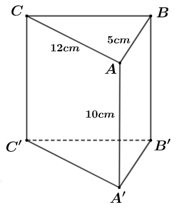 Hình lăng trụ đứng \(ABC.A'B'C'\) có \(AB = 5cm,\,\,AC = 12cm\) và chiều cao \(AA' = 10cm\). Biết diện