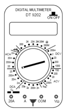 Một học sinh dùng đồng hồ đa năng hiện số DT 9202 (hình bên) để đo cường độ dòng điện