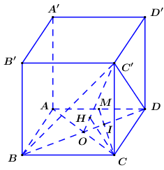 Cho hình lập phương \(ABCD.A'B'C'D'\) có cạnh dài bằng \(a\). Gọi \(M\) là trung điểm của cạnh \(AD\). Tính khoảng cách từ \(M\) đến mặt phẳng \(\left( {BC'D} \right)\) theo \(a\).