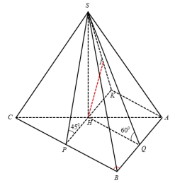 Cho hình chóp \(S.ABC\) có đáy \(ABC\) là tam giác vuông tại \(B\), mặt bên \(SAC\) là tam giác cân tại \(S\) và nằm trong mặt phẳng vuông góc với mặt phẳng đáy. Hai mặt phẳng \(\left( {SAB} \right)\) và \(\left( {SBC} \right)\) lần lượt tạo với đáy các góc \({60^0}\) và \({45^0}\), khoảng cách giữa hai đường thẳng \(SA\) và \(BC\) bằng \(a\). Tính thể tích khối chóp \(S.ABC\) theo \(a\).