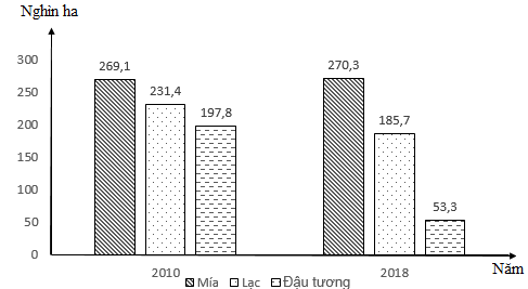 Cho biểu đồ sau:DIỆN TÍCH GIEO TRONG MỘT SỐ CÂY HÀNG NĂM CỦA NƯỚC TA NĂM 2010 VÀ NĂM 2018.(Số