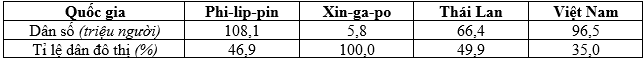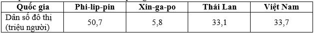 Cho bảng số liệu sau: TÌNH HÌNH DÂN SỐ ĐÔ THỊ CỦA MỘT SỐ QUỐC GIA NĂM 2019. (Nguồn: Niên