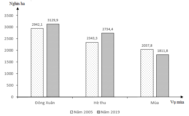 Cho biểu đồ về sản xuất lúa nước ta năm 2005 và 2019:
