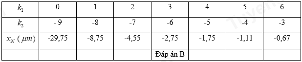 + Sử dụng biểu thức xác định vị trí trí vân tối: \({x_T} = \left( {k + \frac{1}{2}} \right)i\)