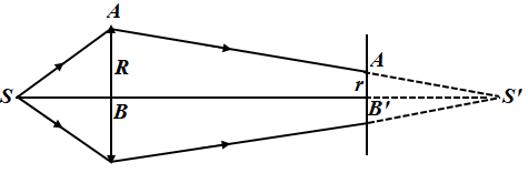 2. Thay vật sáng AB bằng một điểm sáng S nằm trên trục chính của thấu kính và cách màn M một đoạn 45cm. Xác định vị trí đặt thấu kính để vùng sáng trên màn tạo bởi các tia khúc xạ qua thấu kính có diện tích nhỏ nhất.