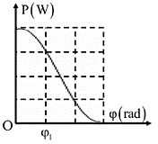 Đặt điện áp xoay chiều có giá trị hiệu dụng và tần số không đổi vào hai đâu đoạn mạch AB mắc nối tiếp gồm điện trở R không đổi và cuộn cảm thuần có độ tự cảm L thay đổi được. Gọi \(\varphi \) là độ lệch pha của điện áp hai đầu đoạn mạch và cường độ dòng điện trong đoạn mạch. Hình vẽ bên là đồ thị của công suất mà mạch tiêu thụ theo giá trị của \(\varphi \). Giá trị \({\varphi _1}\) gần giá trị nào nhất sau đây?