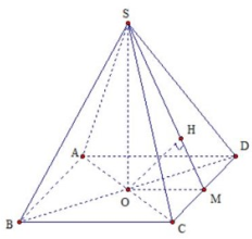 - Trong \(\left( {SOM} \right)\) dựng \(OH \bot SM\), chứng minh \(OH \bot \left( {SCD} \right)\).
