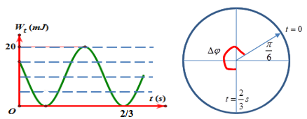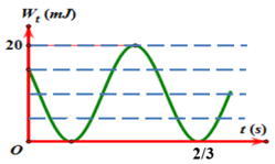 Một vật có khối lượng 400 g dao động điều hòa có đồ thị thế năng theo thời gian như hình vẽ. Lấy \({\pi ^2} = 10\). Trong một chu kì, thời gian giá trị của lực phục hồi nhỏ hơn \(0,4\sqrt 3 N\) là