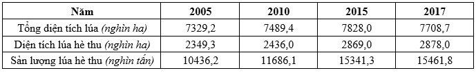 TỔNG DIỆN TÍCH LÚA, DIỆN TÍCH VÀ SẢN LƯỢNG LÚA HÈ THU CỦA NƯỚC TA, GIAI ĐOẠN 2005- 2017