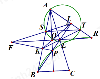 Cho tam giác $ABC$ cân tại \(A\) với \(\angle BAC < {90^0}.\) Gọi \(P\) là giao điểm của \(BE\) với trung trực của \(BC.\) Gọi \(K\) là hình chiếu vuông góc của $P$ lên \(AB.\) Gọi \(Q\) là hình chiếu vuông góc của \(E\) lên $AP.$ Gọi giao điểm của $EQ$ và $PK$ là $F$.