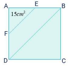 Cho hình vuông ABCD, E và F lần lượt là trung điểm của cạnh AB và AD. Biết diện tích tam giác AEF là \(15c{m^2}\). Diện tích của hình vuông ABCD là: