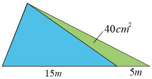 Một thửa đất hình tam giác có đáy là 15m. Nếu kéo dài đáy thêm 5m thì diện tích đất sẽ tăng thêm \(40{m^2}\). Diện tích thửa đất khi chưa mở rộng là: