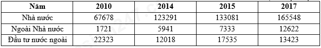 Theo bảng số liệu, để thể hiện sự thay đổi cơ cấu sản lượng điện phân theo thành phần kinh tế của nước ta giai đoạn 2010 - 2017, dạng biểu đồ nào sau đây là thích hợp nhất?