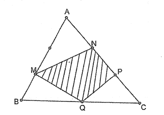 Cho tam giác diện tích là \(45{m^2}\). Biết AB = 3BM; AN = NP = PC; QB = QC. Diện tích tam giác MNPQ là: