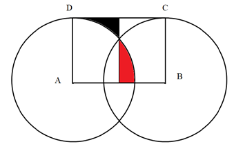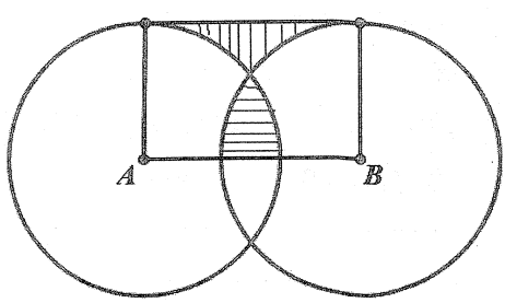 Cho hai hình tròn tâm A và tâm B cùng có bán kính 5cm. Biết \(\pi = 3,14\)và diện tích phần kẻ