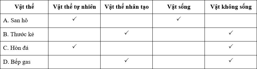 Dựa vào khái nhiệm về vật thể tự nhiên và vật không sống.