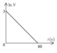 Ban đầu \({t_0} = 0\), một mẫu phóng xạ nguyên chất có \({N_0}\) hạt. Hằng số phóng xạ của chất này là \(\lambda \). Đến thời điểm t, số hạt còn lại chưa phóng xạ là N. Đồ thị bên mô tả sự phụ thuộc của \(\ln N\) vào t. Hỏi \({N_0}\lambda \) có giá trị gần nhất với giá trị nào sau đây?