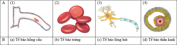 Nối các tế bào ở hàng A với tên tế bào ở hàng B sao cho phù